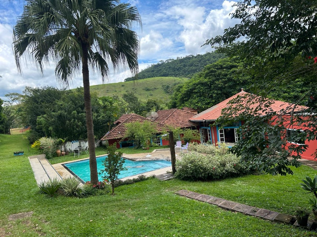 Aconchegante espaço pra relaxar, festejar em família ou amigos. Casa familiar, aberta a celebrações e confraternizações. Ou somente para curtir a paz da roça e natureza. Area externa com piscina recém reformada, sauna, sinuca, área gourmet tudo num ambiente tranquilo de fazenda próximo a Juíz de Fora. Grande espaço de cozinha com forno de pizza e a lenha, cozinha completa. 7 suítes espaçosas, que comporta até 20 pessoas dormindo Casa inteira fica à disposição
