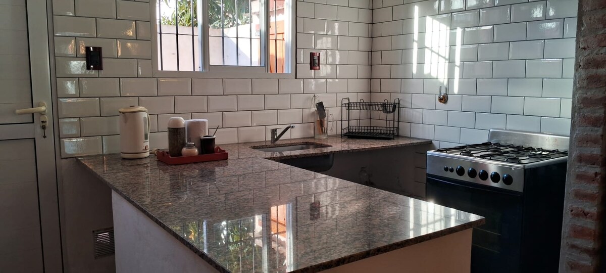 Relájate con toda la familia en este tranquilo alojamiento. Casa completamente equipada, con la calidez y la paz de un verdadero hogar, planificada para la comodidad y el disfrute de hasta cuatro personas. Dispone de dos habitaciones con sus respectivas camas de 2 plazas, una cocina de diseño y un delicioso espacio para disfrutar la comida. El patio con parrilla, para continuar la tradición Argentina y, además, cuenta, con un garaje, seguro para tu auto.