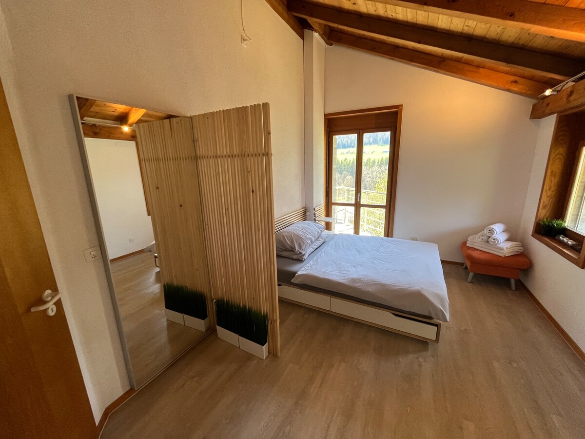I rent a quiet, cozy room with a 140cm wide bed with a good mattress, the wardrobe can be provided with enough storage space for a longer stay, the armchair must be shared with the cat from time to time. A crib can also be provided upon request. You have a great view of the countryside. In addition, there is a private toilet/bathroom, which is very modernly furnished. In the generally very modern apartment there is an open and fully equipped kitchen (with all the equipment you need) and a sauna, which are available to my guests (at extra cost). For the right refreshment on Sunday morning, a rich breakfast is also included in the offer! We will also share our large, shared living room (WiFi). The beautiful terrace invites you to linger. Especially in summer, you love to spend your time here and soak up the sun! By bus you can reach the train station in 10 minutes. Bus station and shopping facilities can be found very close, parking is also available. Everything is decorated with love, so I am especially happy if my guests appreciate it. Feel free to contact me if you are unsure or have any questions. I'm always happy to help out! Best regards!
