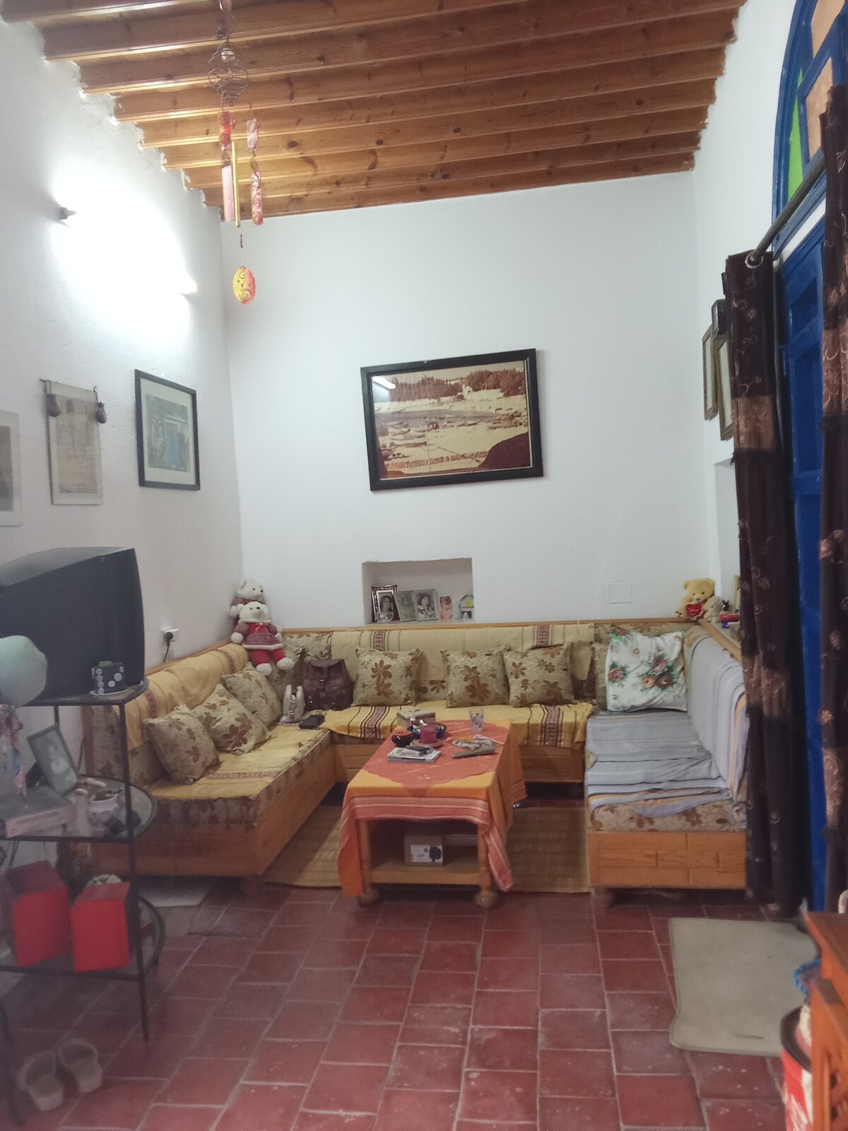Beit Chérifa est une chambre traditionnelle dans la demeure de Emna datant de deux siècles, mais totalement rénovée. D'après nos visiteurs, Beit Chérifa par ses charmants lits et la peinture de son toit est une chambre de princesses. Elle date de l'époque ottomane mais entièrement rénovée. Elle comporte deux lits de 140cm/200cm+ deux canapés + deux chaises et une table. sa superficie est de 18m2 dont 3m/6m.