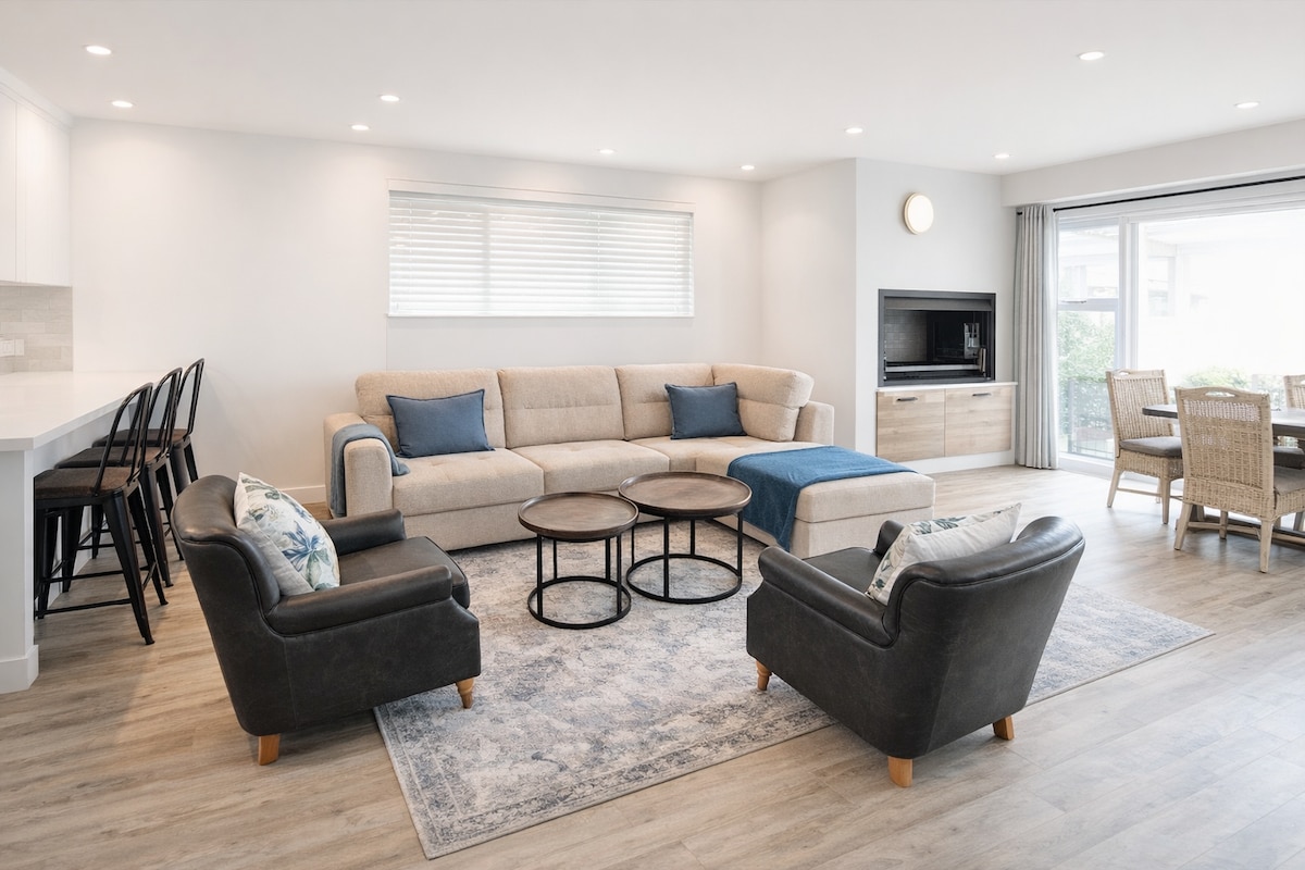 Wake up to ocean air and unwind in a modern duplex designed for comfort and style. Perfect for families, couples, or business travelers, the home pairs contemporary finishes with thoughtful touches from plush bedding and fluffy towels to a gourmet-ready kitchen 3 Bedrooms with premium mattresses, 2.5 sparkling bathrooms with showers and soft towels, bright open-plan lounge with a smart TV
