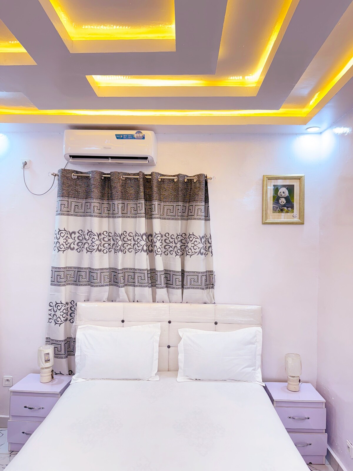 A Secured housing complex for you to enjoy individually or with the whole family. This deluxe apartment is located in the center of Kipe, Conakry, just minutes from popular local attractions such as Prima Center, Lycee Francais and the US Embassy of Guinea. Around 15mn from the airport. Enjoy our premium amenities like 24-7 WIFI connection and electricity, washer& dryer on the premises while you relax to any of our elegantly appointed rooms w/ entertainment system to make ur stay memorable.