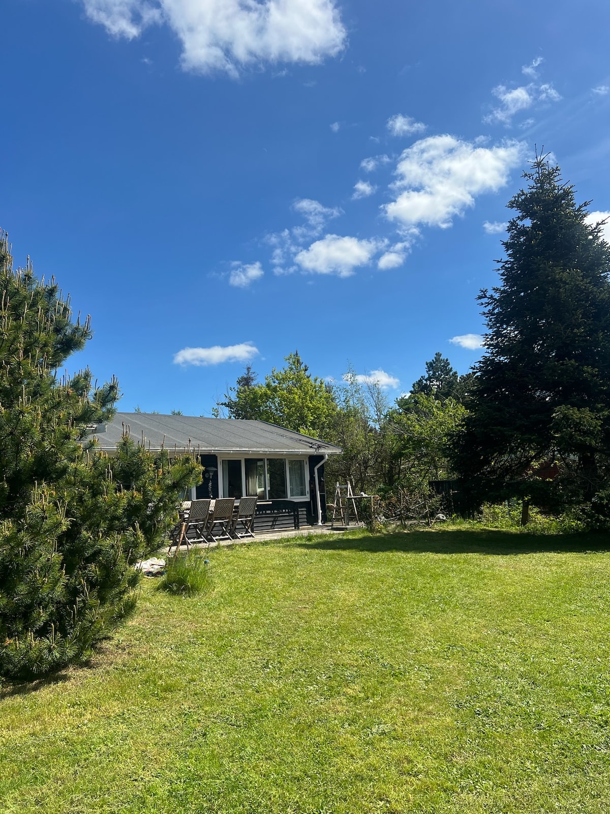 Lovely house full of peace. Here is room for relaxation and adventure in nature for young and old. The house is located 150 meters from a private stone beach (with a jetty in the summer months) and 20 minutes by car from Nyby harbor with sauna and winter bath. The house was originally built in the 1960s by the family's great-grandfather with a newer extension in the early 2000s. There is a large open living room with a wood-burning stove. Nice kitchen with lots of stuff and machines, a large garden, large terrace and swings.