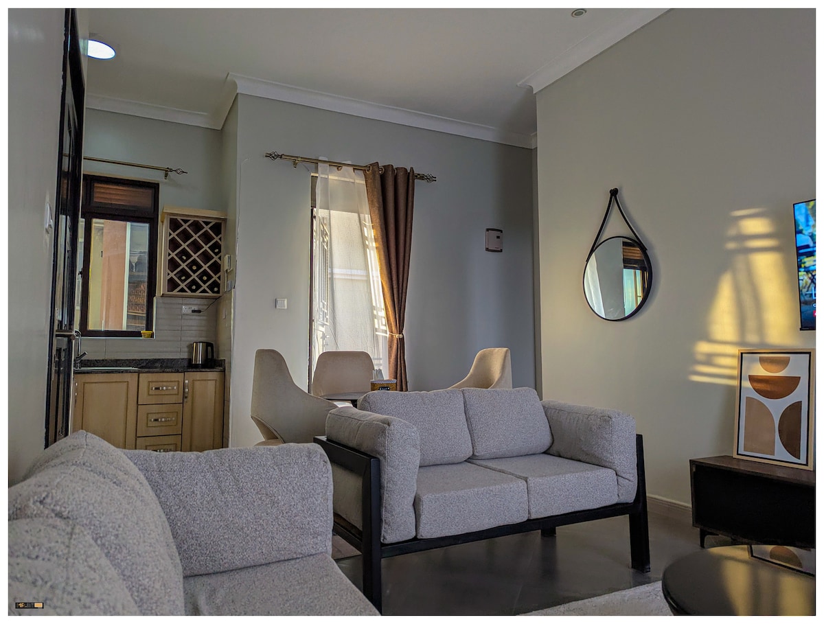 A cozy, stylish tiny studio just minutes from Kampala’s city centre....... Cleverly designed for comfort, with thoughtful details and a homely feel throughout. Surrounded by orchids and greenery, you’ll enjoy a private patio for peaceful outdoor moments. Don’t miss the rooftop terrace; perfect for soaking in stunning 360° views of the city!