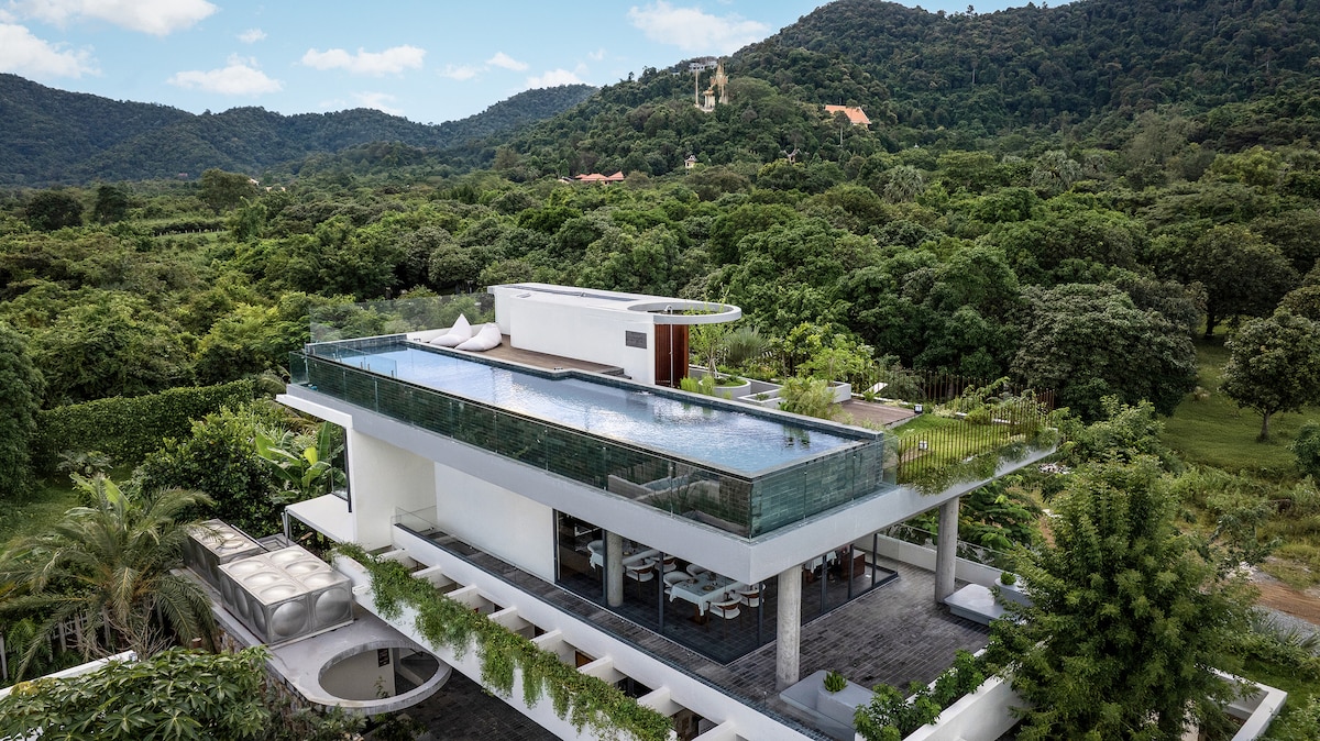 Kampot area have a lot of hotels but few have such a level of architectural sophistication. Each of the 5 en-suite bedrooms have its own private bathroom and terraces with amzing views on the river, the garden, the pool, the sand-beach, the mountain... The decoration is elegant and discreet. The 20meters long overflowing pool is very pleasant to swim under the shadow of palm and mango trees. The tropical garden is perfect and well kept. The restaurant is only open for guests.