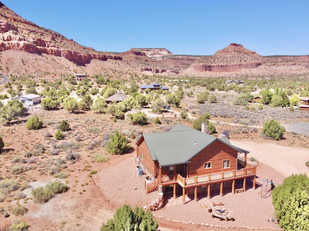 Elevation Celebration is the perfect getaway! Constructed in 2020, this 925 square-foot rustic cabin with a covered porch is located on 5.6 acres. The cabin features 2 bedrooms, 2 bathrooms, a sleeper sofa, kitchen, indoor fireplace and outdoor fire pit. Located 5 miles east of Kanab, you'll enjoy stunning sunrises and sunsets against the red cliffs from the front porch. Use this cabin as your basecamp as you explore the many scenic wonders that are unique to Southern Utah and Northern Arizona.