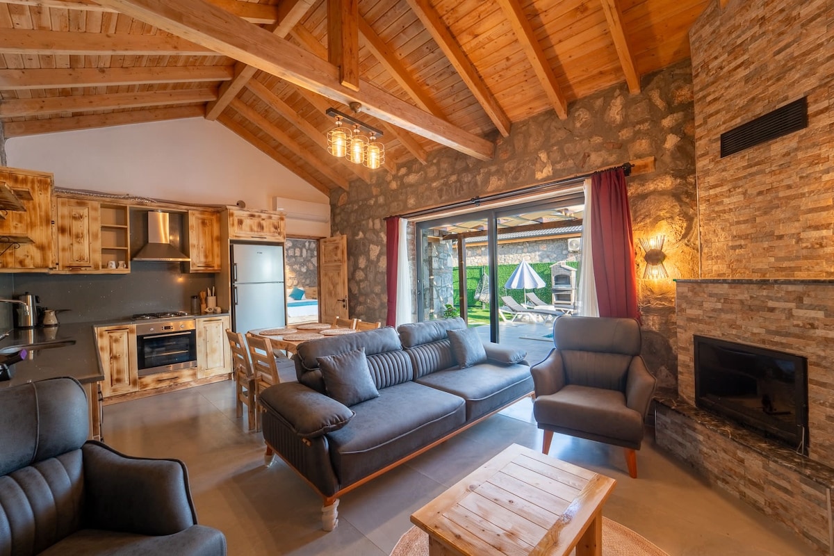 Welcome! In the magnificent Faralya region of Fethiye, this unique stone house surrounded by olive trees that protect you from the scorching rays of the sun offers you a peaceful holiday experience in the heart of nature with its private pool in the garden. Our house, which awaits you with its quality architecture and comfort, is located 5 minutes by car from the world-famous Kabak Beach and only 25 minutes from Ölüdeniz. You will make unforgettable memories with our house, which is ideally located for both relaxing and exploring nature.