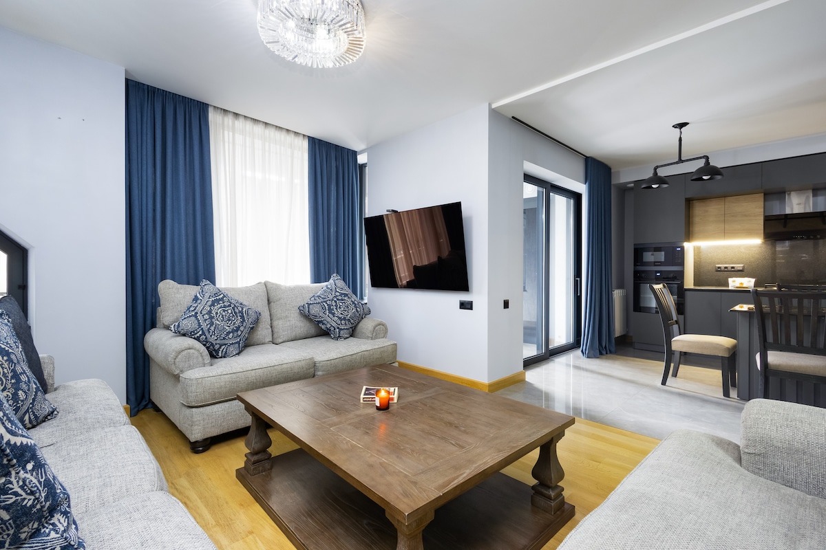 Kick back and relax in this modern, stylish space. Enjoy the incredible view from our open air balcony while you sip your coffee or a glass of wine 🌇 The big supermarket is right next to the building with anything you might need, the biggest mall in town with cinema theater is 10 minutes walk away. Enjoy a good movie on our big tv screen using our free Netflix and Amazon Prime accounts. The apartment is equipped with anything you might need to feel comfortable. The host is available 24/7