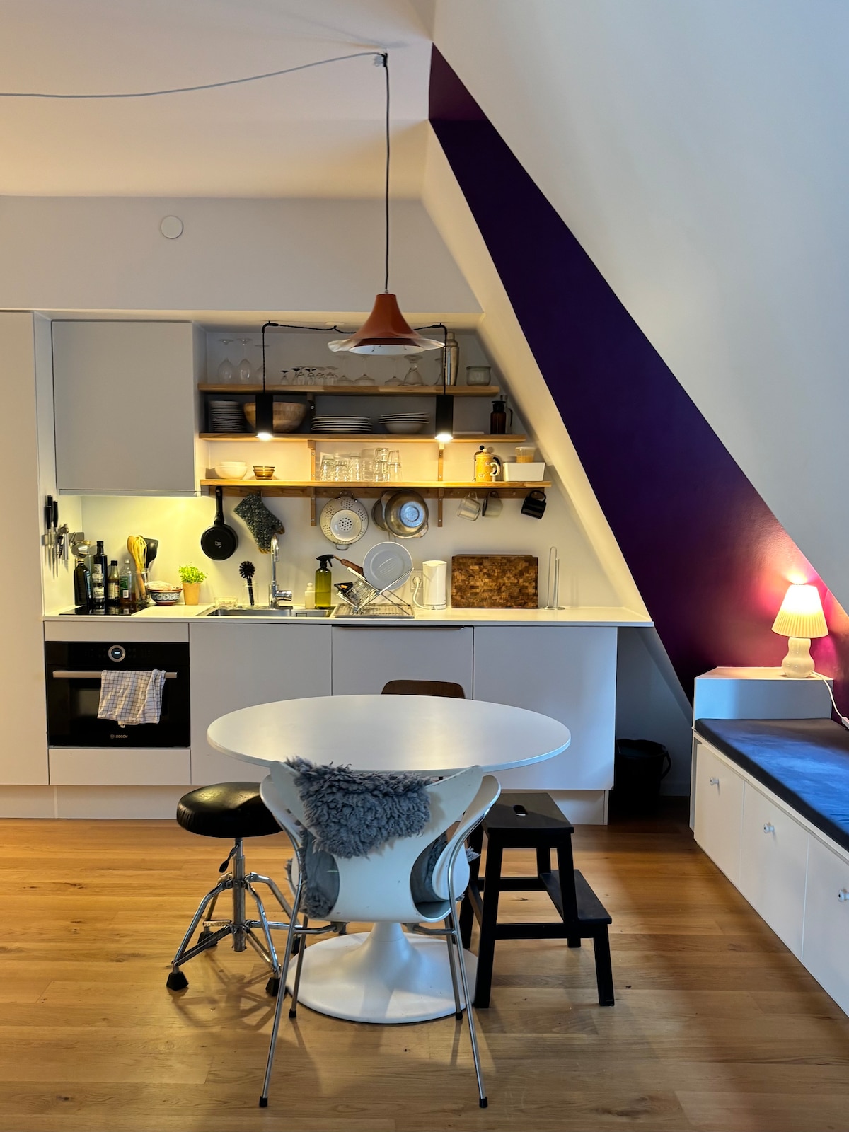 My apartment is situated on the third floor of a 300-year-old heritage building. It's important to note that, there is no elevator, which is common as less than 9 percent of buildings in Copenhagen's inner city have elevators. Keep this in mind if you have heavy luggage. My newly refurbished apartment features a hallway leading to the bathroom and a living room that opens to the sleeping area and kitchen. It offers a cozy (Hyggeligt) view of the city's rooftops.
