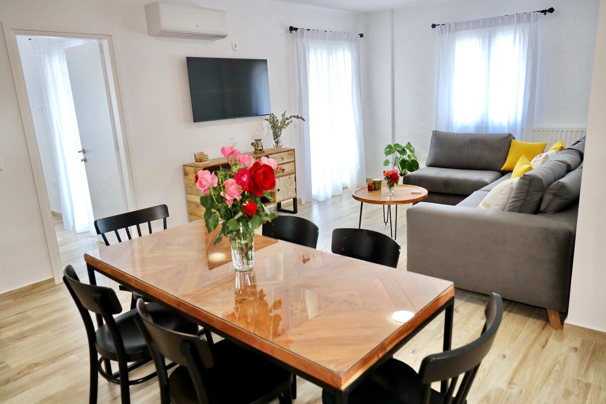 Escape to our brand new, immaculately clean, independent home in Nafpaktos. Bright & stylish, complete with all of the modern luxuries and designed with an architect's touch. Our home is the ultimate place to unwind after a day of exploring the dreamy seaside, traditional mountains, and charming local villages in the region. You'll love the sophisticated open layout, the full wrap-around balcony, the high-speed internet connection, and the space to work from home. We await you in Nafpaktos!