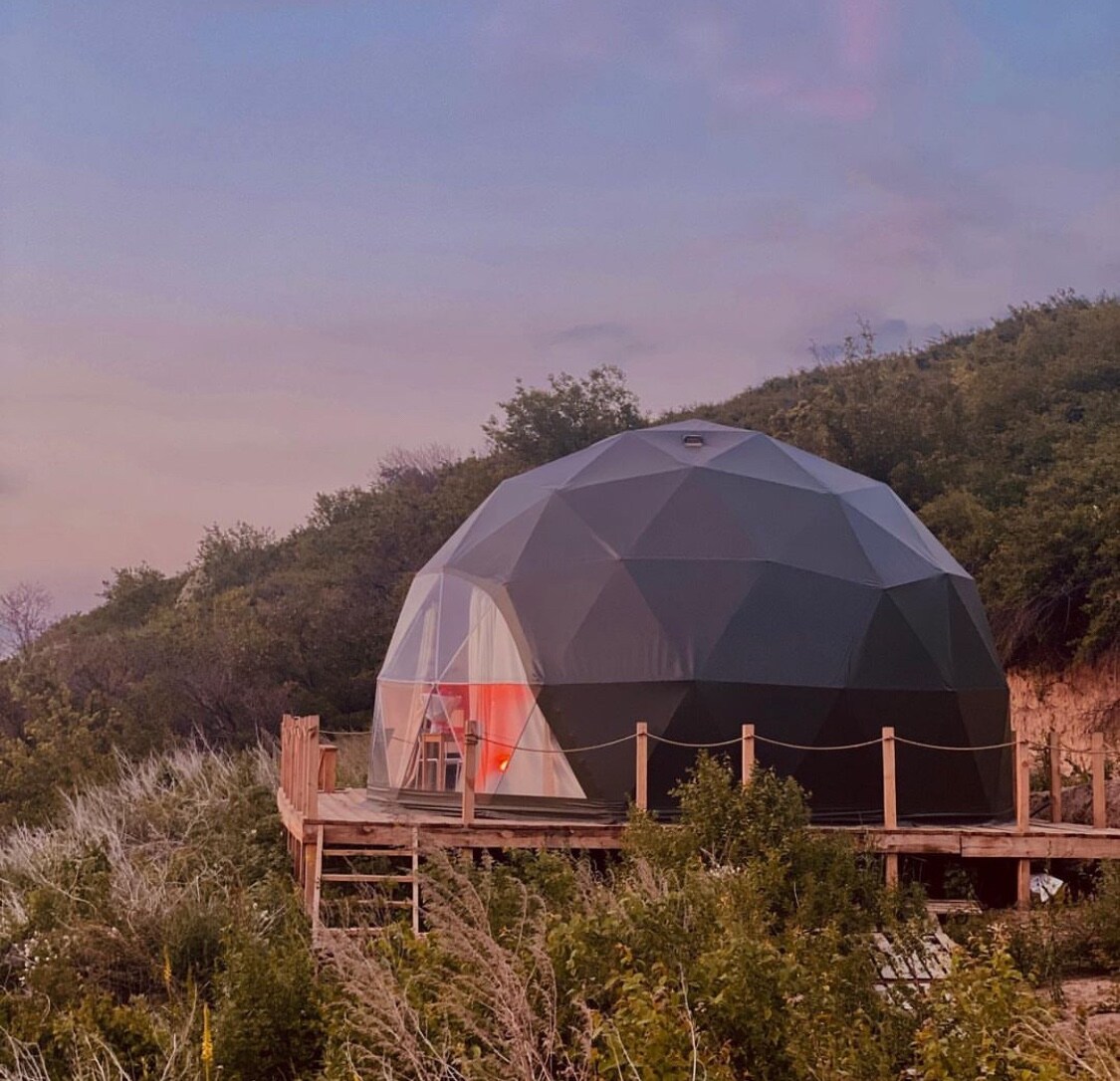 У нас 4 купольных домика с шикарным видом на дневной и ночной город, красивые закаты, всего в 15 минутах от центра города, чистый воздух, тишина и покой