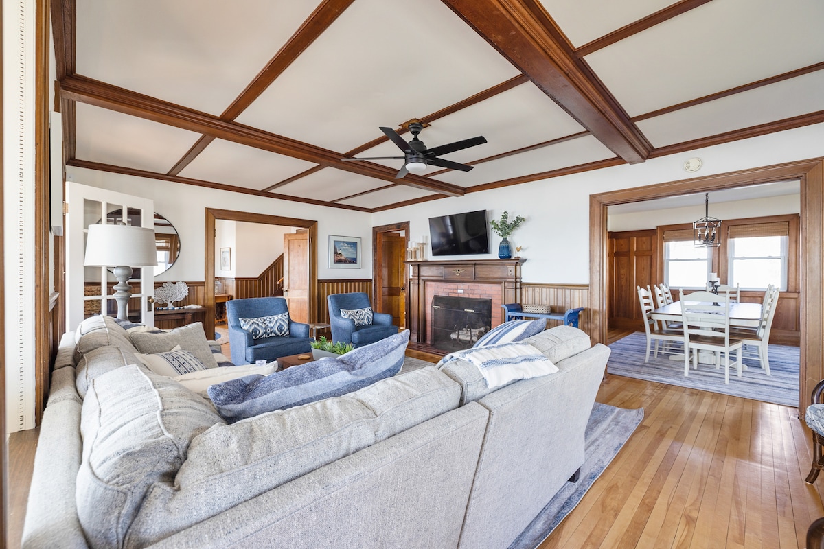 QUIET NEIGHBORHOOD, WELCOME TO FAMILIES! GAS FIREPLACE ! Classic architectural details all sited on an enviable ocean/beach location. An alluring home, lovingly maintained for 110 years, encompasses the true understated elegance of the era in which it was created. Amidst the 3,500 sq ft+, find 6 gracious bedrooms accented by 4 and a half baths, updated granite kitchen, pantry, glassed in front porch with mesmerizing views of the ever-changing sea.