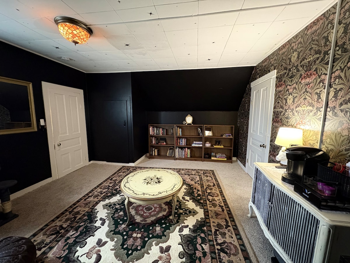 Centrally located to all the richness of the city, this upper unit bedroom is a canopy of serenity. At Ivy & Ink, your room is a sensory space to recharge, with the natural light of morning to the twinkling warmth of the fairy lights. Enjoy access to our library, named Looking Glass Library for its whimsy, and a warm beverage while you cozy with our cats. With thoughtful amenities, you'll find this to be your home away from home.