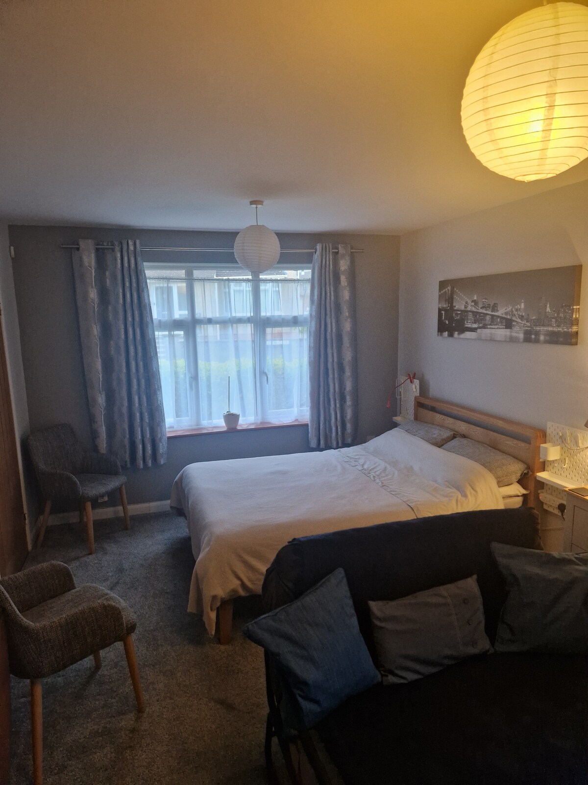 Relax in this spacious flat. We aim to make you warm, comfortable and have everything you need. The king size bed will ensure a great night’s sleep; the en-suite has a power shower, bath and wc. Heavenly and local Bramley Products are provided free of charge. The kitchen has a kettle, toaster, Nespresso machine, induction hob, oven, washing machine as well as your cutlery and crockery essentials. The smart TV is set up with a host of apps so you can sit back and enjoy a good box set.