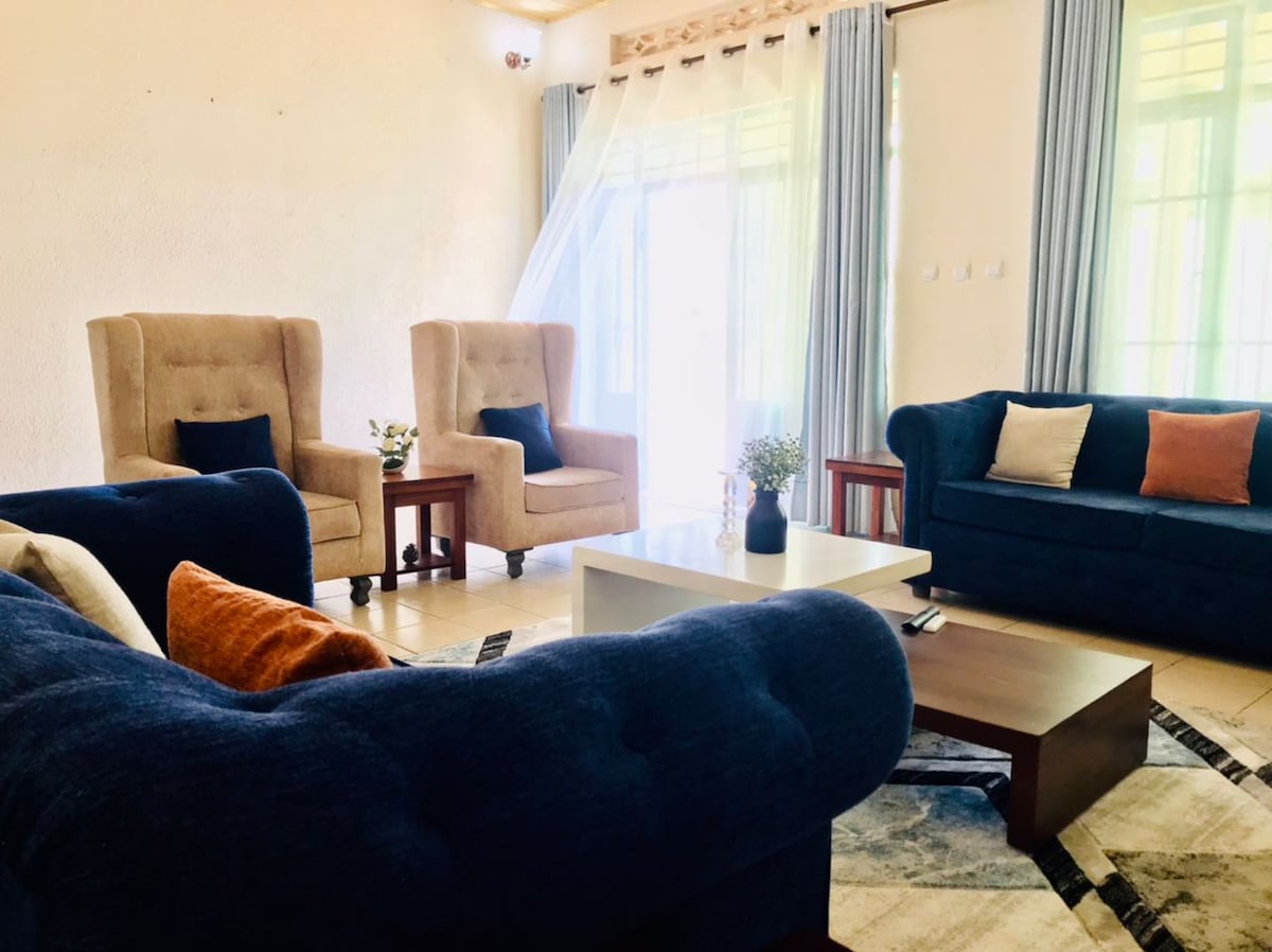 Spacious, comfortable and cozy clay brick home with a touch of elegance. This property is located 5 minutes from the Kigali International Airport, 2 minutes from a fresh air market as well as many surrounding area shops providing any product you may need. It is also situated on a main road that is also served by public buses and other private modes of transport. It is also a 10-15 minute drive to town and other sites such as the Kigali Convention Centre and the Parliament building.