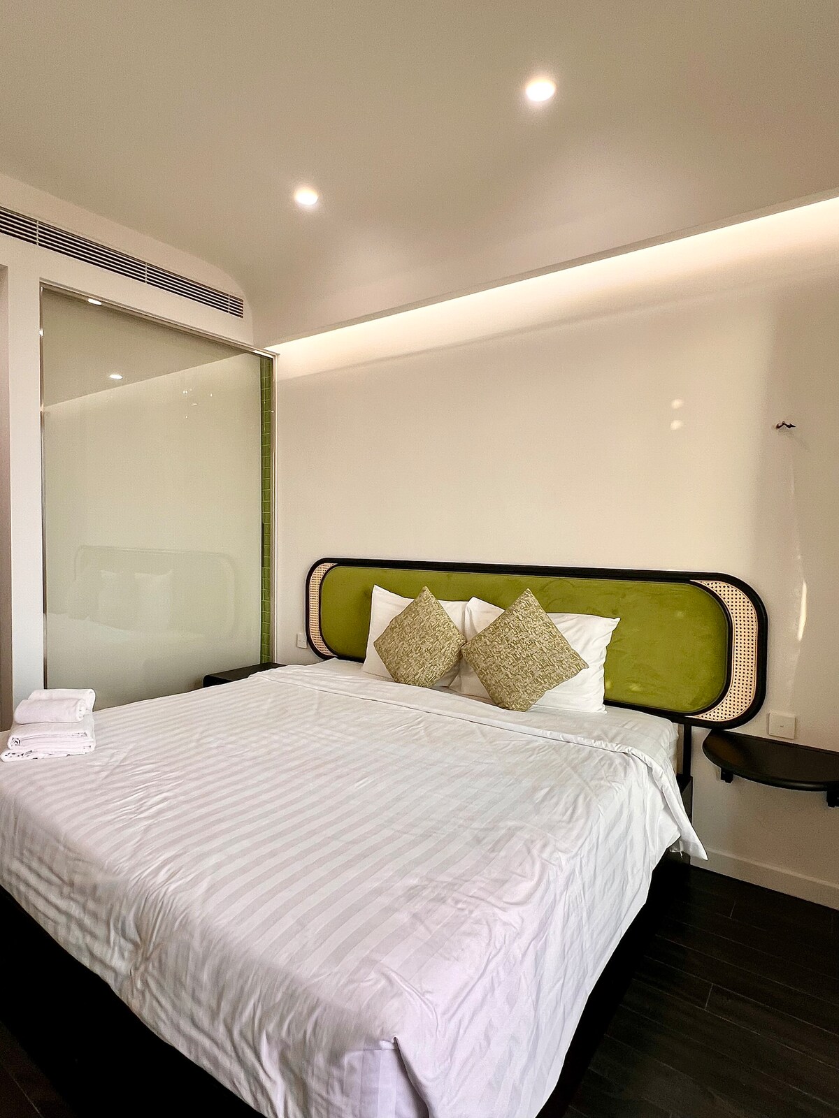 This studio is located at Sunset town (28m2). As a startup host, I’ve put a lot of care into creating a comfortable and stylish space for guests to enjoy. Free Access to an infinity pool, kid club & gym 5 minutes walk to the cable car station, night market & supermarket 7 minutes drive to Khem Beach One of its sweetest highlights: nightly fireworks from the balcony and a stunning sunset from the rooftop infinity pool. I hope this space feels like your home away from home.