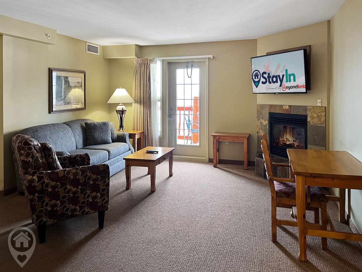Enjoy a relaxing mountain stay in this welcoming one-bedroom, one-bathroom condo at Polaris Lodge, located in the heart of Kimberley Alpine Resort. Filled with natural light, the space features a comfortable living area with a cozy gas fireplace, a full kitchen, and private balcony access. Unwind after a day of skiing, biking, or hiking, and enjoy modern comforts such as Wi-Fi, air conditioning, and convenient underground parking. Perfect for year-round mountain adventures.