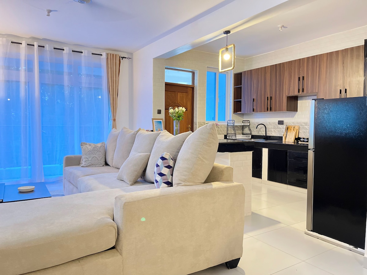 Welcome to this spacious and stylish home on 3rd floor. Perfect for those looking for an affordable getaway in a quiet location. Take a dip in the cool swimming pool or peacefully stroll 7 minutes to the beautiful sandy beach with panoramic views of the Indian Ocean. Only less than 5 minutes to Whitesands hotel and Pride Inn Paradise. 8 minutes to Serena hotel. Ride a taxi or tuktuk only 7 minutes to all major amenities like supermarkets, restaurants and entertainment spots and much more.