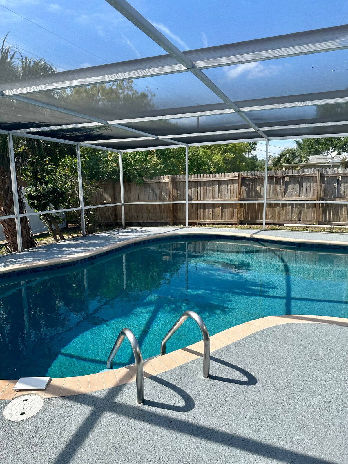 Beautiful Pool Home Near Port Canaveral & Beachline – Minutes to KSC & Cocoa Beach! Immerse yourself with tranquil views in this updated 3-bed,2-bath private oasis! With a newly resurfaced large 8ft deep pool, it’s a family hit! With a fully paved spacious deck it’s prime for soaking up of some of the iconic FL sun!☀️ Located near SR 528 for quick access to Kennedy Space Center, Port Canaveral, local attractions, and the sandy shores of Cocoa Beach. Perfect for families & space lovers alike!