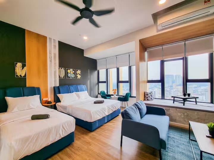 Experience a blend of modern and vintage charm in this suite. Escape to this private space featuring eclectic accents, luxurious bedding, and kitchenette. Walk to Petronas Twin Tower, Kuala Lumpur top attraction in 10 minute Free parking, Wifi with in-house entertainment, and laundry. Perfect spot for business trip & family staycation. Sparkling clean room with mint condition.