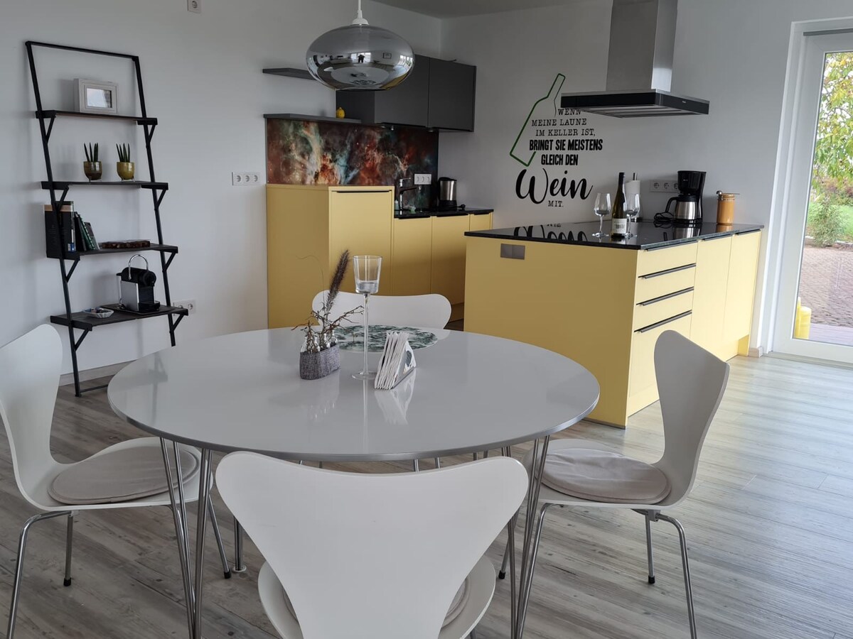 Welcome to the southern wine route *Weinland Life* Sit back and relax in this quiet, stylish place. Open living combines cooking and living in a harmonious atmosphere. Modern furnishings with small highlights, such as the integrated coffee machine, which with 10 coffee variations in the morning lets you start the day with a smile. Immerse yourself in life on the southern wine route surrounded by vineyards & hiking trails