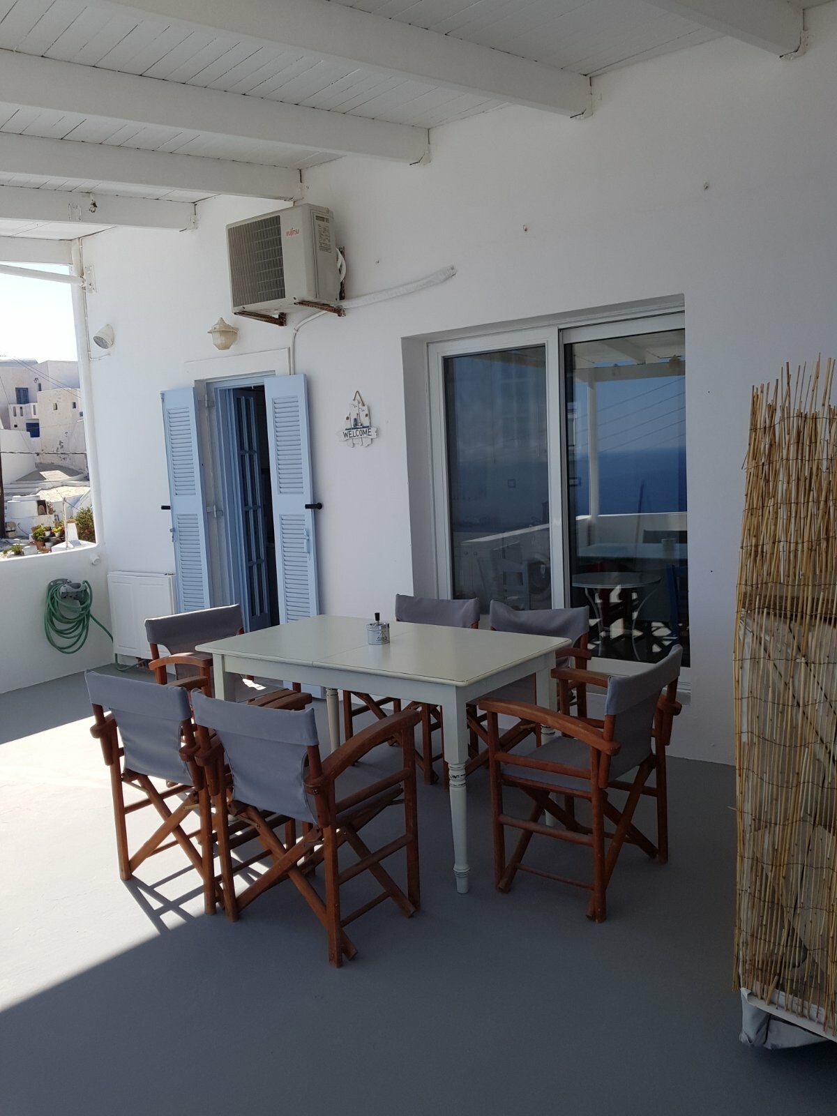 Ideal location just 50 meters from Kamari beach, near the finest hotels, bars and restaurants.The neighbourhood is quiet and everything you need is in a very short distance.Plenty of mini markets and supermarkets around, local bus station 3 min walk, public parking near the property.The apartment is fully renovated in a combination of a very welcoming modern and traditional Santorinian design.This apartment consist of one with fully equipped kitchen) and one private bathroom.