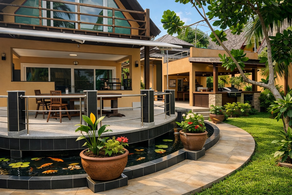 -Exclusive Strand-Pool-Villa Thai Styl -5 Zimmern /bad mit Pool direkt am Strand. -Wifi in allen Räumen -Platz für bis zu 10 Personen -Küche voll ausgerüstet mit Nespresso Kaffeemaschine, Backofen, Mikrowell und Geschirrspühler -Garten stehen die Liegestühle bereit. -Alle Zimmer (mit Safe) der Villa haben einen privaten Eingang -2 Master Bedrooms im 1. Stock mit Aussenbad. STROM & WASSER WIRD NACH ZÄHLER ABGRECHNET Stromkosten pro KHW 6 Baht Wasserkosten pro m3 85 Baht