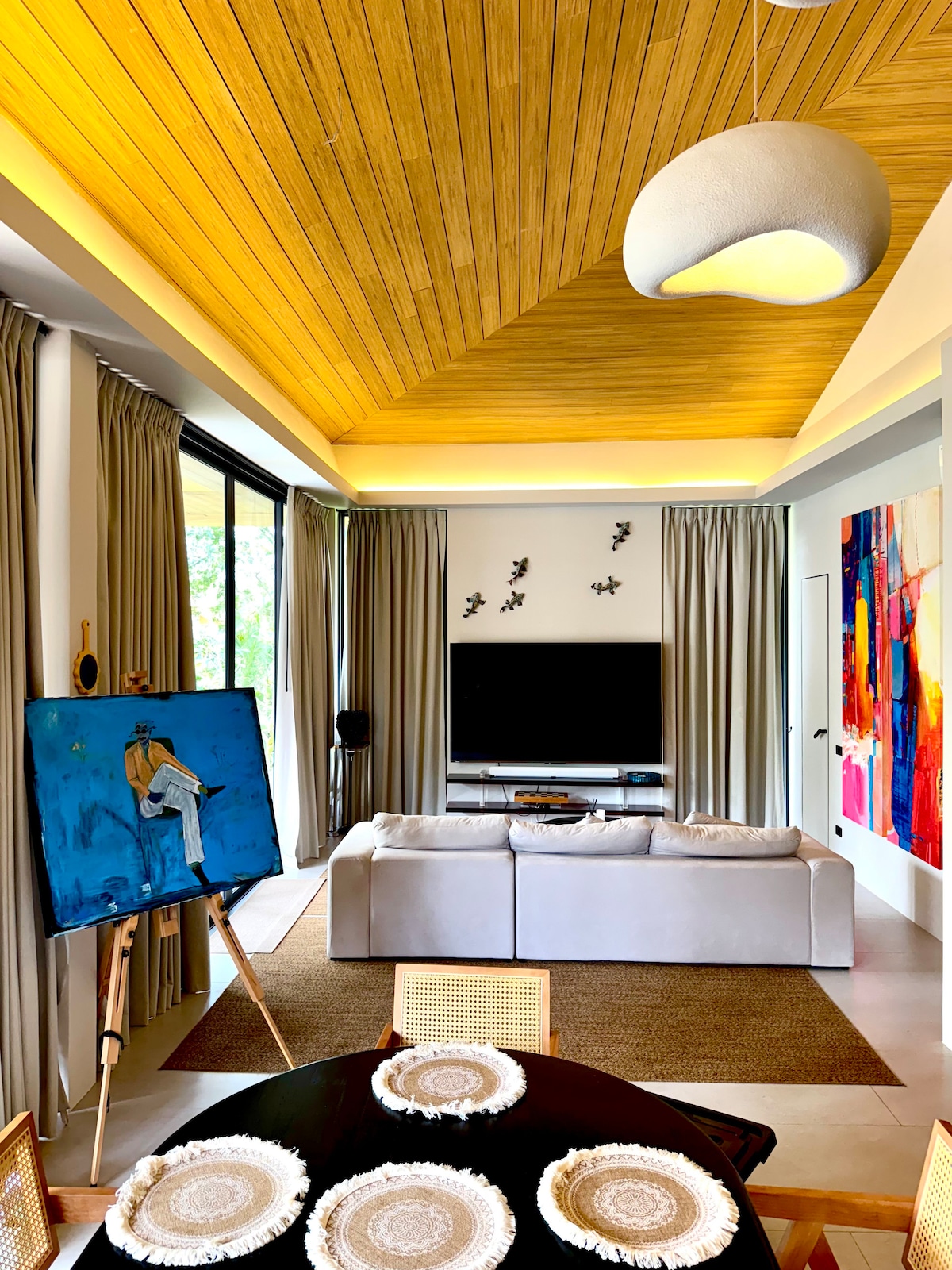 Lush Eden Hideaway is a boutique tropical sanctuary surrounded by vibrant greenery and curated décor. This elegant 3-room villa features a stylish living area with a fully equipped kitchen, unique art pieces, warm lighting, and thoughtful details in every corner. Enjoy a private pool, a serene garden with soft night illumination, and cozy outdoor seating—perfect for a refined, tranquil island escape.