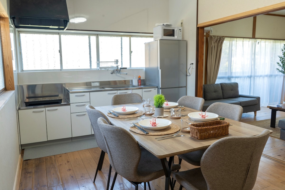 The entire building is for rent! Relax with friends and family in a quiet place and calm accommodation. You can also enjoy a BBQ. The living room, Japanese-style room, and Western-style room are all separate, so it's okay if you have different sleeping times. Please also contact us if you have a large group of 5 or more. There is a lot of beautiful nature within 10 minutes, as well as parks and walking courses. Surfing points, where international competitions have also been held, are dotted nearby, making it a heavenly place for surfers. There is a wooden deck and garden where you can enjoy coffee time while listening to the birds sing and soaking up the sun. Beer is great to drink while watching the beautiful sunset. The starry sky is very beautiful in winter. You can enjoy BBQ and campfires without worrying about the neighbors.
