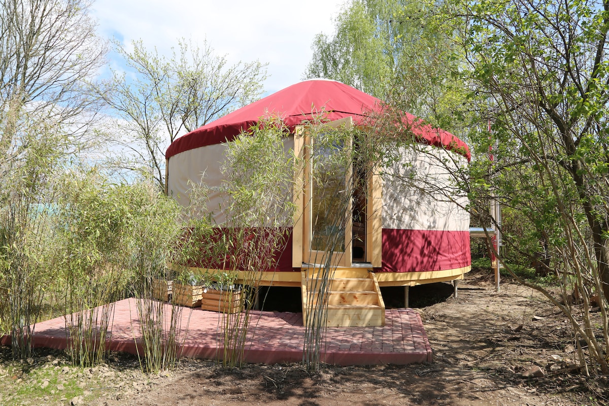 Our yurt combines the best of two worlds: the comfort of an apartment and the feeling of being close to nature, like camping. Good insulation and a fireplace ensure that you are cozy and warm. With us, you can experience the unique atmosphere of a round tent, but you don't have to do without hot water, electricity, a simple kitchen and a heated bathroom. You can relax in our large garden or on your terrace or explore the beautiful surroundings.