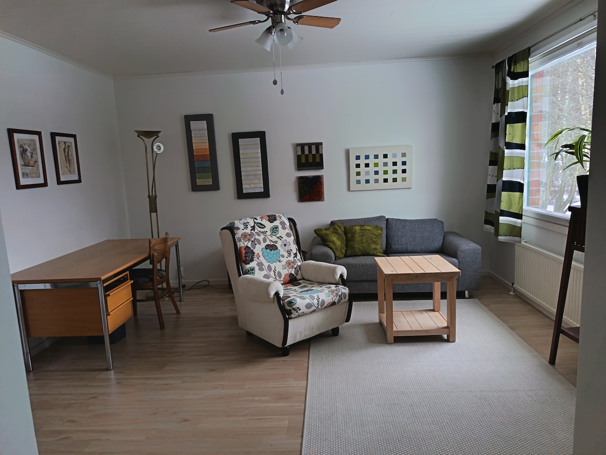 Here's a cozy studio where you can stay for a longer period of time! *140 cm bed * 80 cm extendable extra bed * Washing machine * a car parking space with a heating plug on the other side of the street * kitchenette with good cooking utensils * TV * Possibility of a sauna shift on Fridays Linens and towels are included in the price, depending on the number of guests. The house is located close to R-kioski and Minimania, about 1.5 km from the city center.