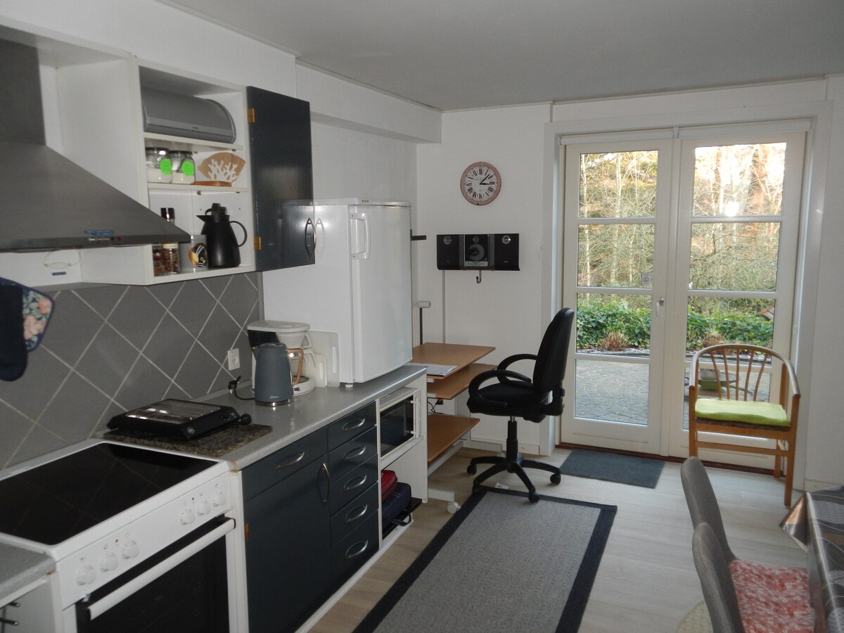 NO Youth groups 2 bedrooms,1 bathroom, 1 kitchen/ living room, separate entrance. (Living area about 75 m2) The apartment is a ground floor-apartment , but you have to use an outdoor or indoor staircase. Not suitable for people with disabilities. There is a lovely view to the garden from both bedrooms. Our house is situated in a quiet area near municipal park.