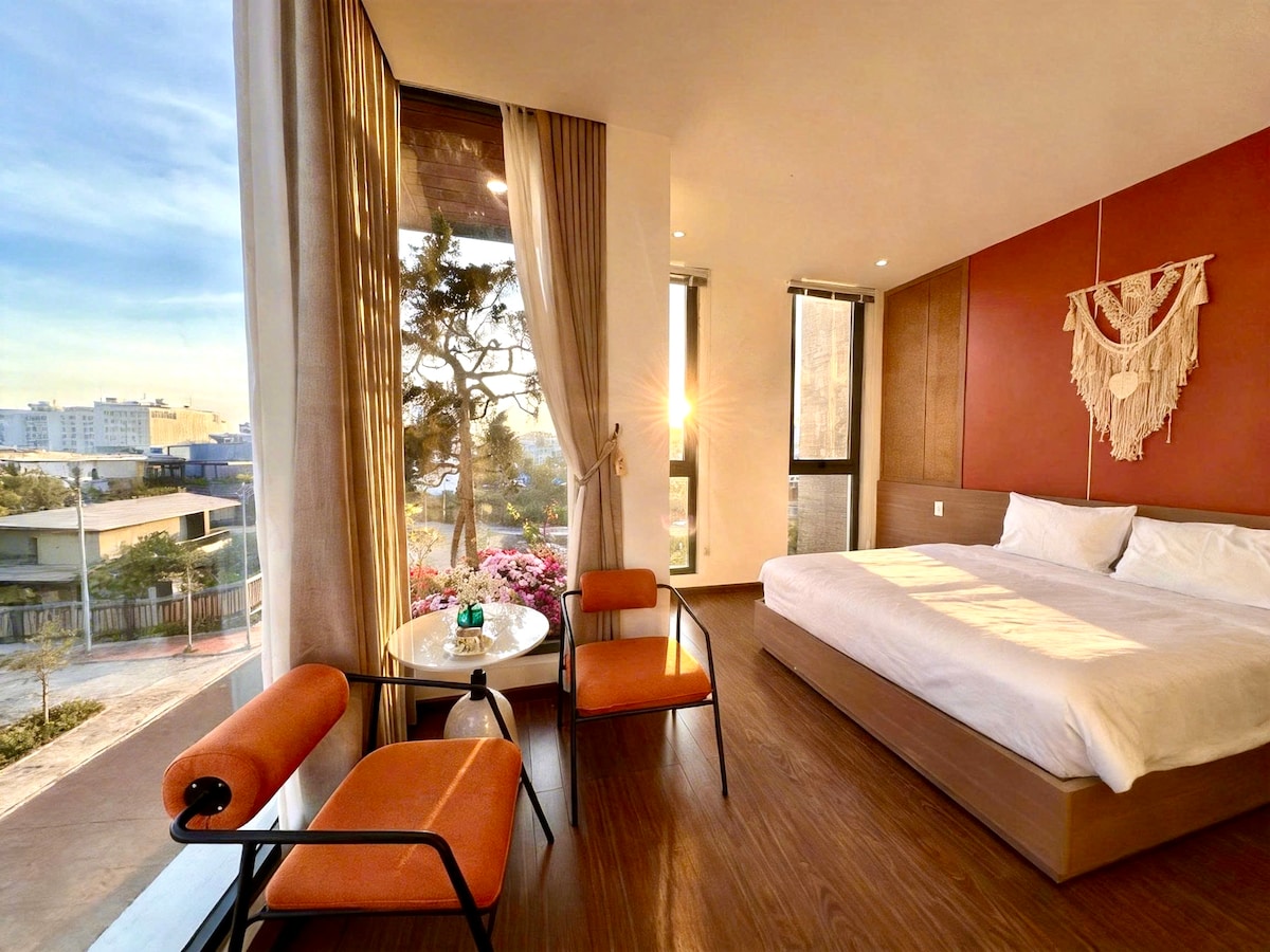 Lumi Room is inspired by Nordic design, featuring a clean white palette, bright open space, and refined minimalism. Sunlight streams through large glass windows, bathing the room in a soft glow reminiscent of a Northern winter. Warm wooden accents blend with crisp white tones to create a calm and airy atmosphere. A private balcony welcomes fresh air and Pleiku’s golden sunsets. An ideal retreat to rest, breathe deeply, and embrace serene simplicity.