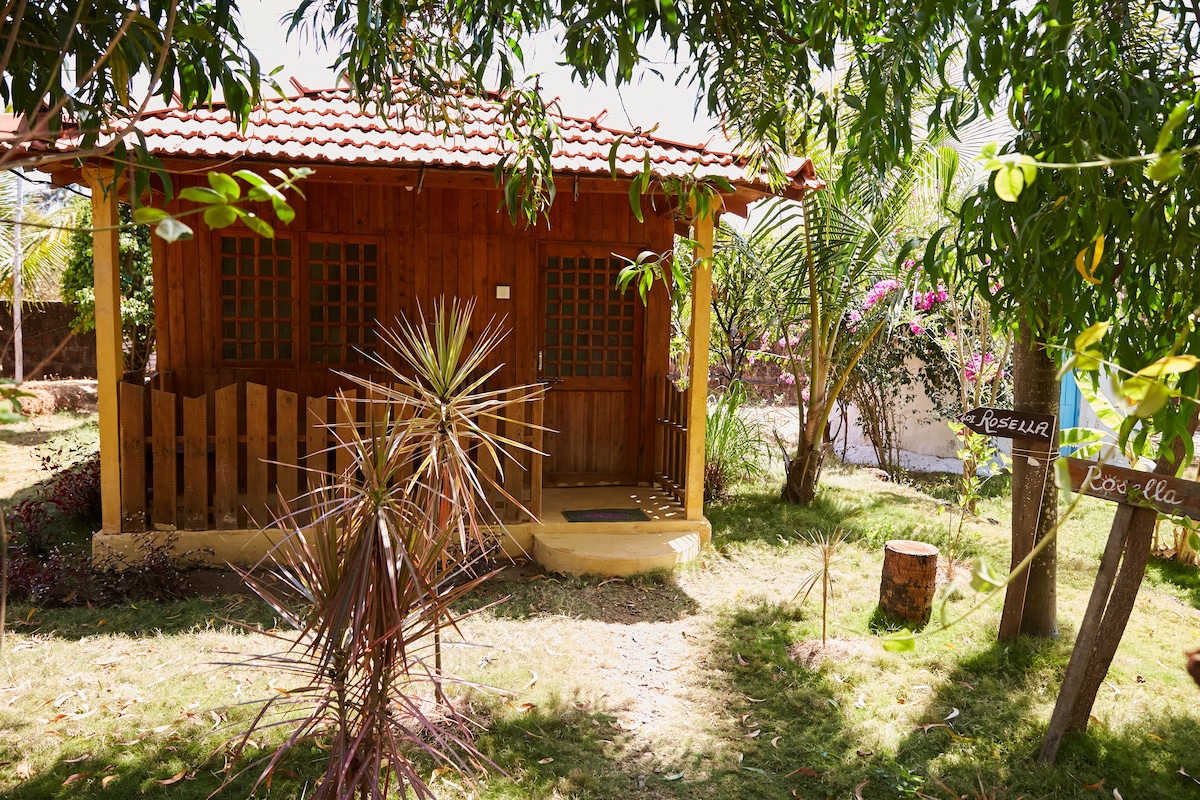 Our cosy guest housel is nestled between trees at the End of Morjim beach. the entrance is throught our cafe, that is standing on the main road. General store is 1 min away. Apart from our cafe, there are plenty of places to eat around. The way to beach is just after 3 shops on the right from our cafe.