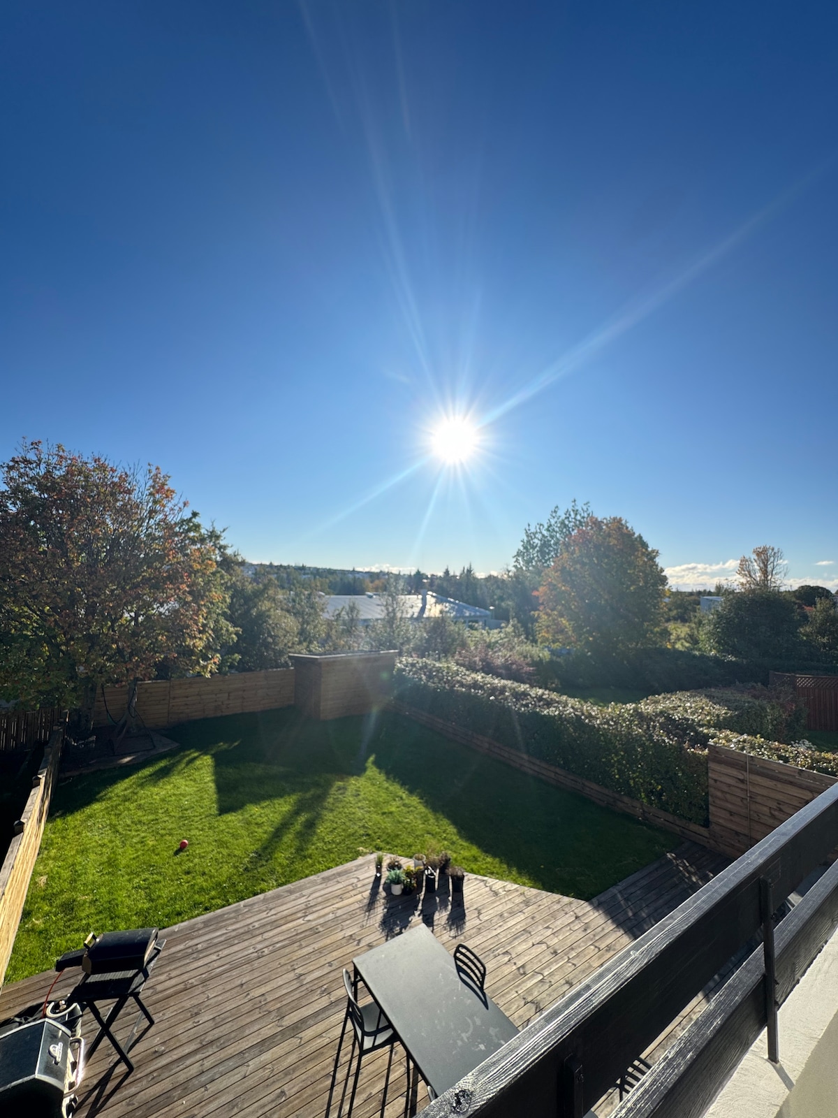 Welcome to our bright and spacious home, perfectly located in a quiet, family friendly neighborhood with beautiful views. You’ll enjoy a large garden complete with a hot tub, cold tub, BBQ, and a cozy terrace and balcony. On clear nights, the balcony is also a perfect spot to watch the Northern Lights. Inside, the house offers kitchen, four comfortable bedrooms, office room, living room, bathrooms and free parking. Families will love the nearby playgrounds and bus stop is 2 minutes away