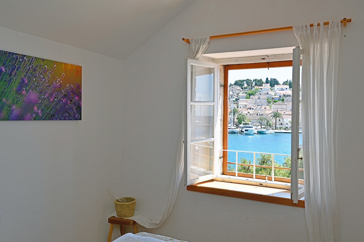 On top of 137 years old house in Attic is an apartment. Place that seems like a nest with unique sight on Hvar Pjaca (Plaza), Riva, and Port. It is perfect for a couple on honeymoons or just for enjoying fabulous vacations with family up to three.