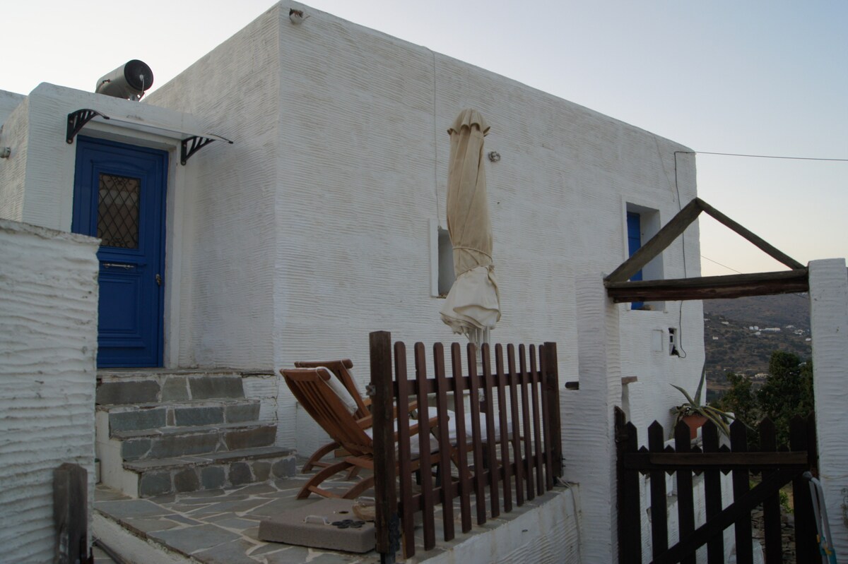 Beautiful home in Cycladic style with wonderful view and big terrace. It can host up to 4 people as it consists of a bedroom and a sofa in that can turn into a bed for 2 children or 1 adult. Very close to Korthi bay (around 3 minutes by car) where beautiful beaches, plenty of restaurants, shops and cafes exist. Only 10 minutes away from the famous “Tis Grias to pidima” beach.