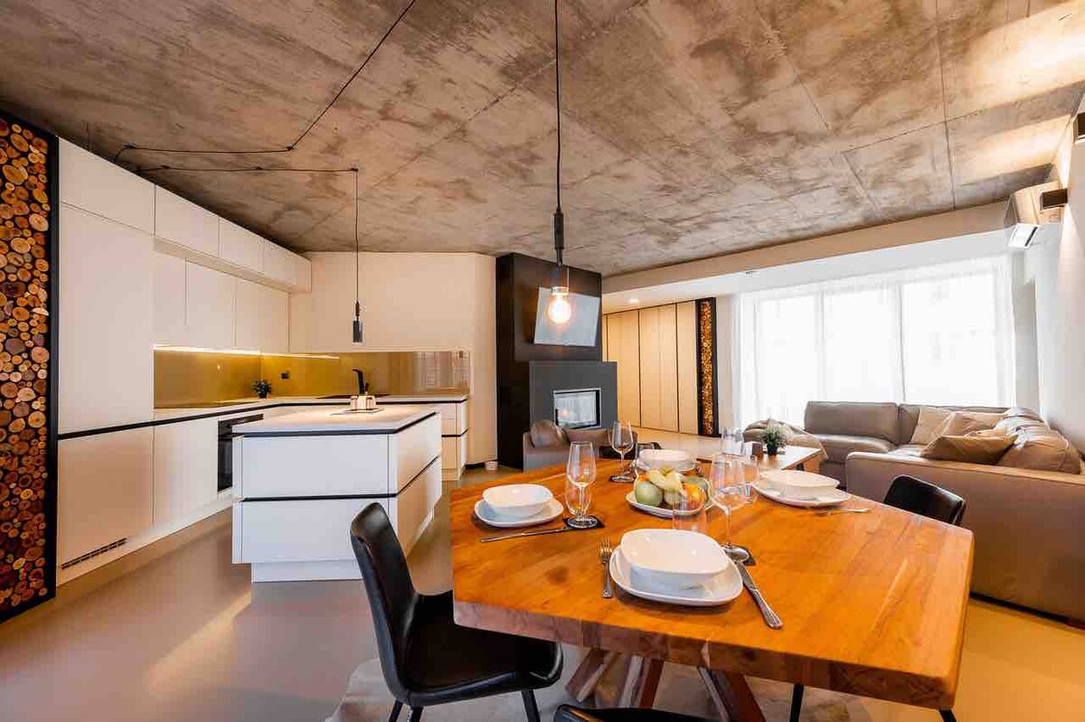 Luxury, modern living in a fancy 3-bedroom Apartment located in the city center. Stores, restaurants, and bus stops are all within 100 meters of the accommodation. The newly renovated apartment is equipped with high-end furniture and appliances, built-in ceiling speakers, 5.1 audio system, 55-inch 4K smart TV, smart TV in the bedroom, a huge walk-in shower, and many more. The design is truly one of a kind and something you won't see anywhere else.