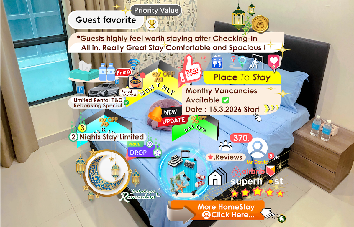 Armadale Residence Homestay 📍 Location: Gala City ✨ Unit Details: ▪️ 3 Bedrooms • 2 Bathrooms ▪️ Maximum 10 persons — suitable for family & group stays 🚗 Nearby Hotspots: ▪️ 5 mins ➜ Airport ✈️ • Premiere 101 (Local Delights & Food 🍜) • CityOne Megamall • Emporium (Food & Dessert 🍰) • Saradise (Restaurants • Bars 🍹 • Café ☕) ▪️ 8–10 mins ➜ Vivacity Megamall • Boulevard Shopping Mall • Aeon Shopping Mall • The Spring Shopping Mall