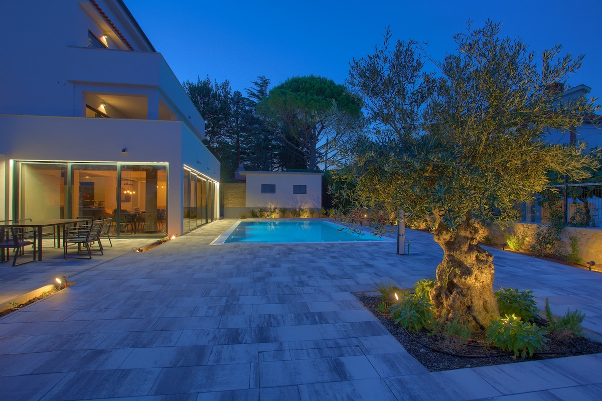 Modern, simple elegance is one of the main features of the beautiful villa located in the town of Krk. It has a private pool and can accommodate up to 8 people in 4 bedrooms. On the ground floor there is a spacious, open plan living room, dining area and kitchen plus an additional bathroom. On the first and second floor there are 4 bedrooms, all with en-suite bathrooms. The entire house is air-conditioned. Villa has BBQ and outdoor dining area. The villa is located close to the city centre.