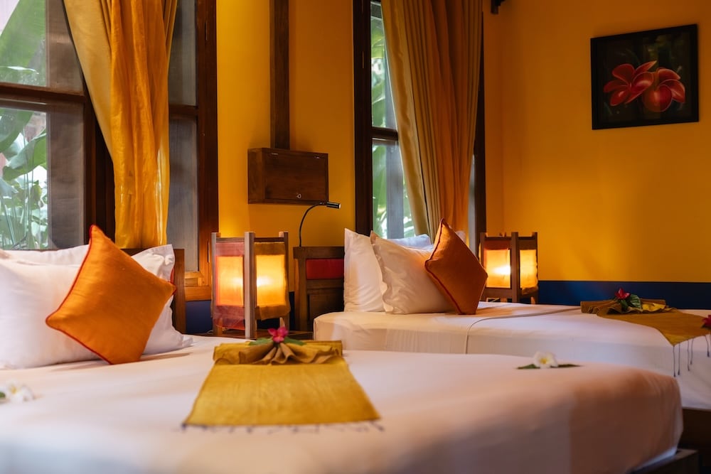 Our Frangipane Twin Room is a space I designed to feel warm, calm, and close to nature. Inspired by traditional Khmer homes, it blends natural wood, soft light, and garden views to create a peaceful retreat. Here, guests can slow down, breathe, and feel truly at home while enjoying modern comfort and the gentle charm of Battambang.