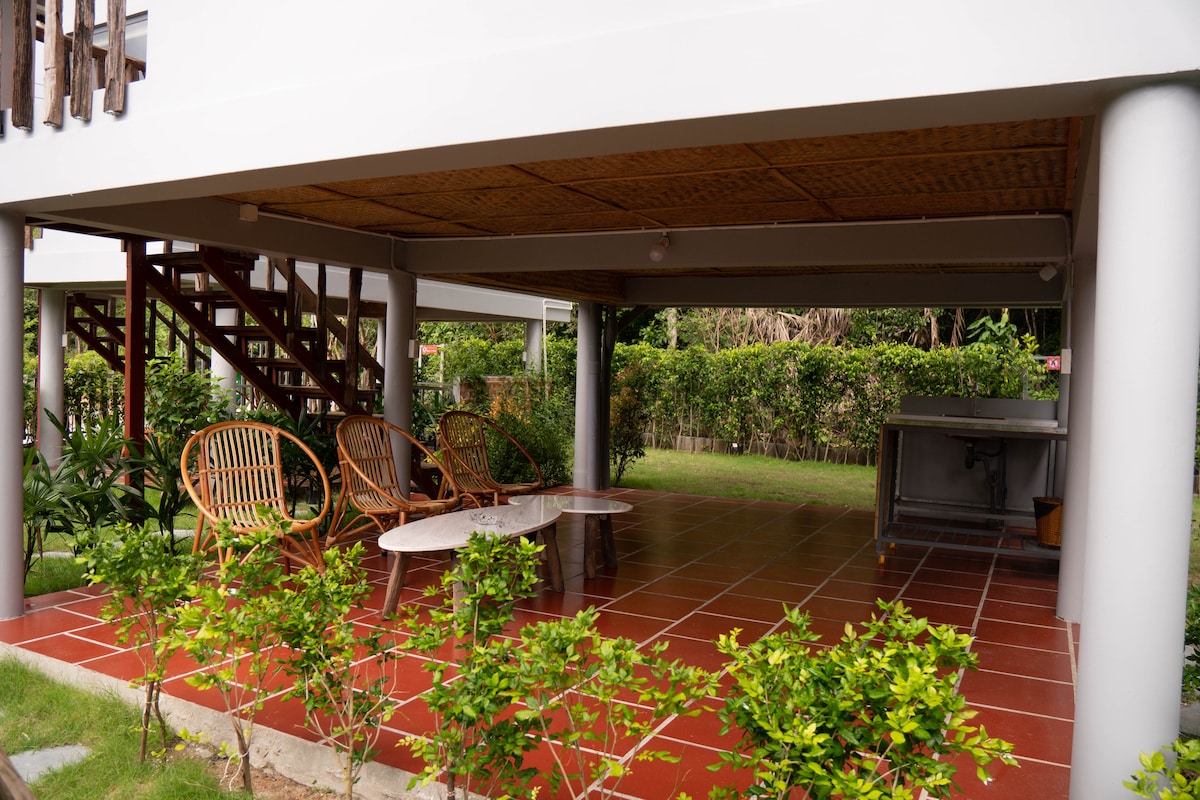 Tucked away in a peaceful forest, yet just a 5-minute drive from the vibrant beach and nightlife of Phú Quốc's largest town. Enjoy free transport to the beach or main street aboard our luxury golf cart. Your cabin features a luxurious king-sized bed and an open-air bathroom. The kitchen comes fully equipped, perfect for those who enjoy cooking. Your own outdoor dining area. Free access to the nearby resort's swimming pool and sun loungers. Put in Inquiry if your dates are not available.