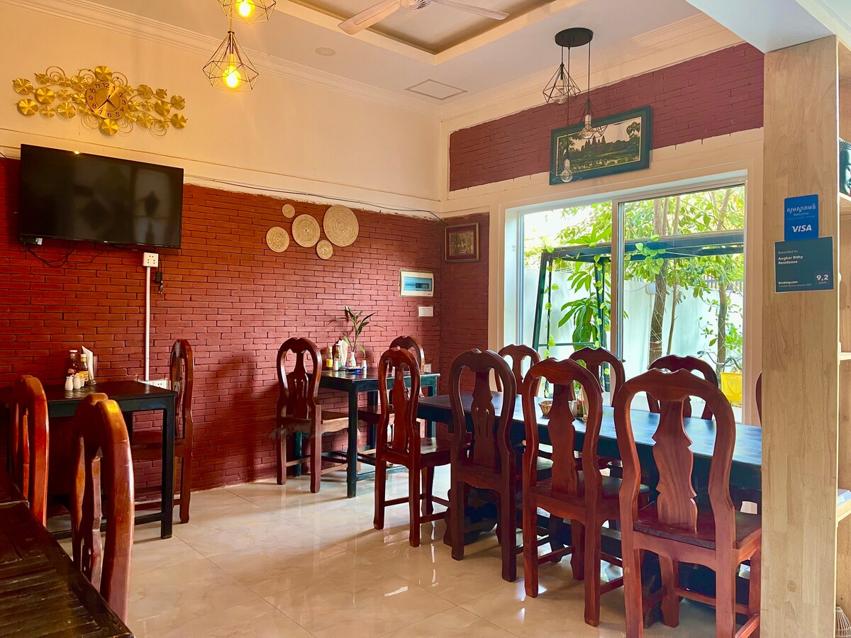 About the room& my service 1, My house is located in a village called Trang, it is 3km from Angkor wat temple and 3 km to downtown of Siem reap. 2, It is your private room,bed,hot shower, toilet, Aircon,balcony.work space. 3, I will help to manage your itinerary as a private tour in advance or do it after your arrival. 4, Transfer in/out free off charge ( bus station). 5, My drivers are kind&honest & easy going people. Your holiday is safe&happy. 6, free laundry. Thanks 🙏