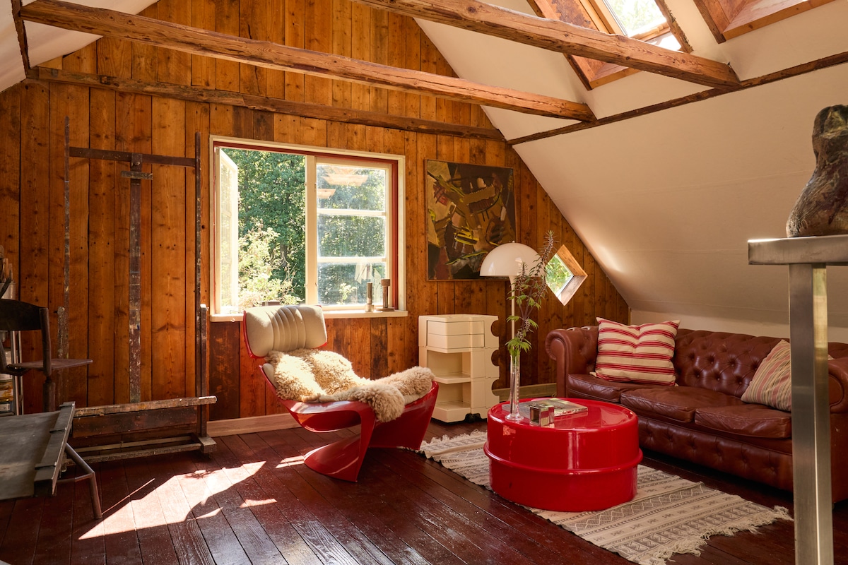 Our farmhouse is located close to the city in a small oasis in the Hovshaga district. 54 square meters designed to create a peaceful place close to most things. A fireplace that provides heat and light gives this studio a nice homey atmosphere. The accommodation also includes a large bathroom with shower and a well-equipped kitchen that invites cooking. Parking is available directly adjacent, shop and gas station within 5 minutes as well as easy connections by both bus and bicycle!