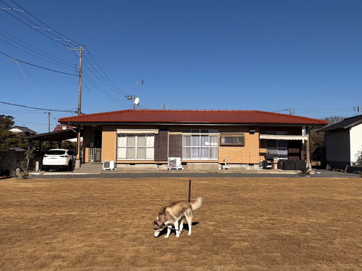 1 hour 30 minutes by car from Tokyo 1 minute from Chosei Interchange on the Kujukuri Toll Road Ichimatsu Beach 7-minute walk Family Mart is a 3-minute walk Unlimited access to the jacuzzi and sauna Equipped with a BBQ stove and 1 box of charcoal WiFi is available Unlimited Netflix & Disney plus & Hulu & Amazon Prime Near Taiyo no Sato Surrounded by an American fence, you can spend time with your beloved dog. ● Please use common sense after 8 pm because the neighbors are ordinary residents. If we receive a complaint, we may call you directly, so please be considerate. ● Guests who do not follow the house rules may be asked to cancel their stay. In that case, there is no refund for the accommodation ● If you only use the facility, we will charge 2,500 yen for the facility. Please be aware that if there are undeclared guests, you will be charged double the accommodation fee. For day-trippers, an additional night's fee will be charged if you stay after 9 pm Please note. Please follow the house rules and make some great memories at WANPAKU99
