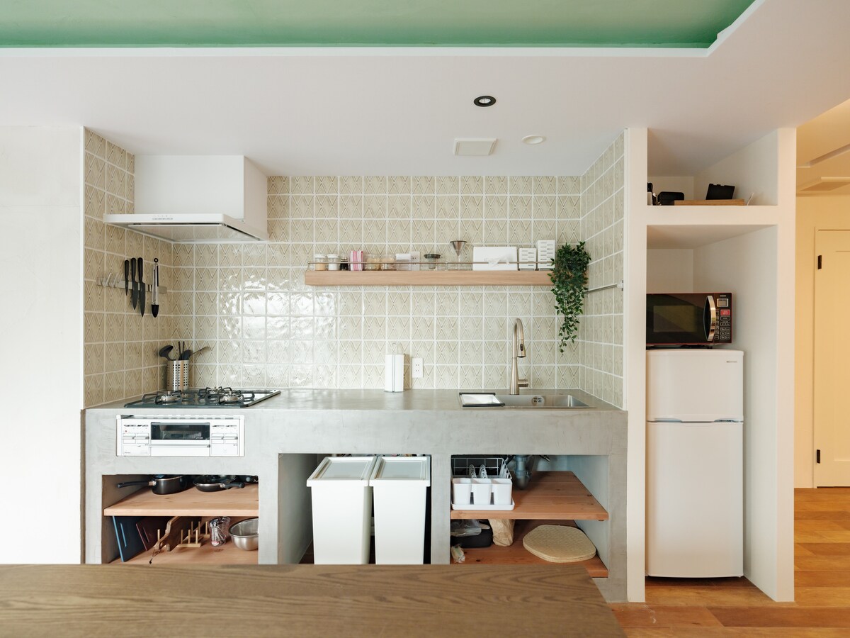 Conveniently located just a 3-minute walk from JR Shin-Suizenji! Newly opened on February 14th! Accommodates up to 8 guests ☆ Free parking (1 car) ☆ Equipped with a 100-inch large screen and smart projector ☆ A unique atmosphere that combines antique and modern ☆ All facilities and equipment are brand new because it has been fully renovated ☆ There is a park with the best sunshine next to the apartment. There is also a 24-hour supermarket next door, so you can enjoy cooking during your stay. Also, Suizenji Park is within walking distance, so why not visit it while taking a walk? It is a convenient location 5 minutes by car to the downtown area (Kamitori Arcade, Shimodori Arcade) and 10 minutes by tram ☆ The area around the apartment is quiet, but there are many convenience stores and restaurants within walking distance, so we recommend eating and walking ♩ Enjoy your time with your family and friends in a comfortably designed space ♩