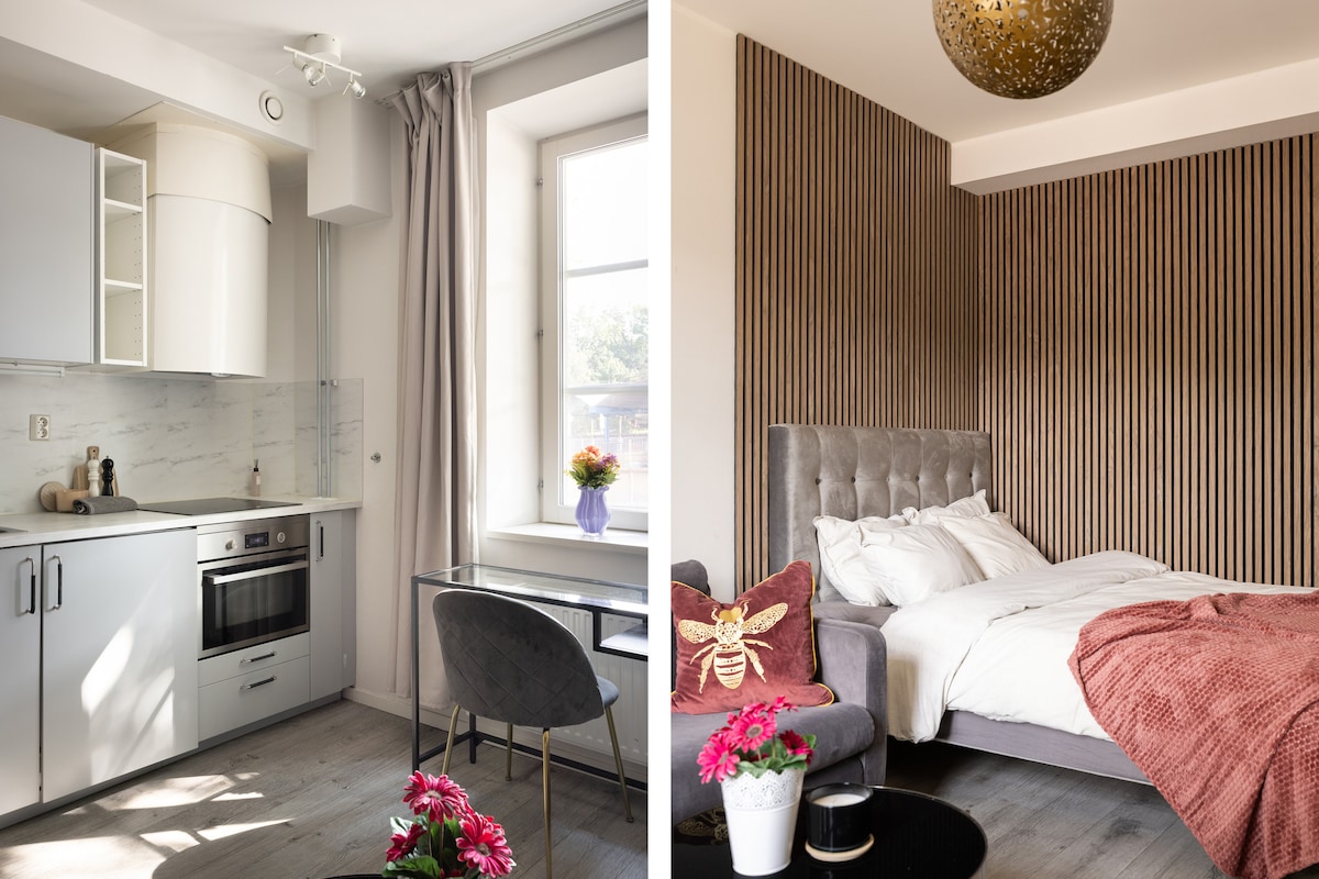 Amazing location near the waterfront and City Central! This comfortable penthouse apartment is newly renovated, bright, and offers a hotel-like feel. It’s tastefully decorated with Scandinavian furniture and features solid wooden floors. The fully equipped kitchen and bathroom provide all the essentials for a convenient stay. This apartment is perfect for both families and business travelers looking for a longer stay.