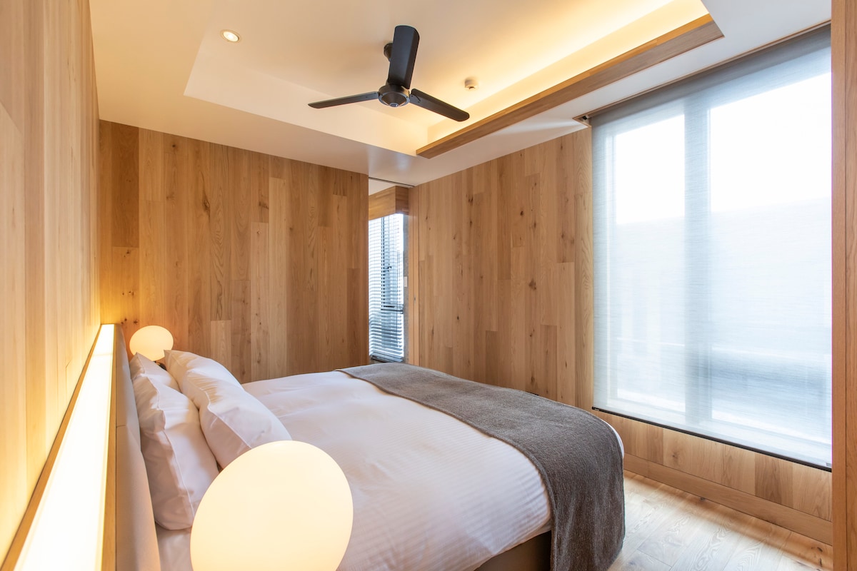 <B> Open Plan Bedroom Yotei Suite, Always Niseko | Nisade by The Luxe Nomad </B> • Complimentary winter shuttle service to gondola • Cosy, modern aparthotel near Niseko’s top attractions • 2-minute drive to Ace Family Lift and ski slopes • On-site reception, restaurant, ski lockers and parking • Family-friendly interconnecting rooms on request • 4-minute drive to restaurants and bars in Hirafu