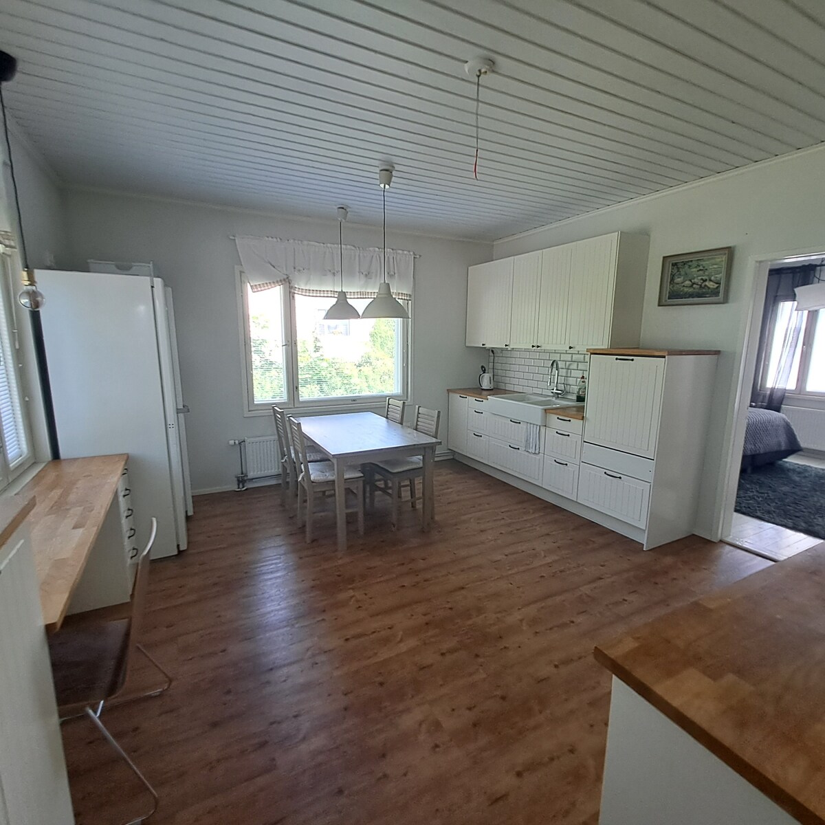 A winterized cottage with all the comforts on the lake shore. The cottage's upstairs and downstairs bedroom have double beds and the living room has a sofa that can be spread out to a double bed. The outbuilding has a wood-burning sauna and a sleeping loft with a double bed. (Bath barrel extra charge). Gas grill and wood-fired grill can be found in the yard and you can sit under the lean-to. Easy to get to by public transport. Skating rink in Vesankajärvi in winter and a sledding track. Disc golf course Vesala monttu 2 km, Petäjävesi 20 km. Laajavuori 9 km.