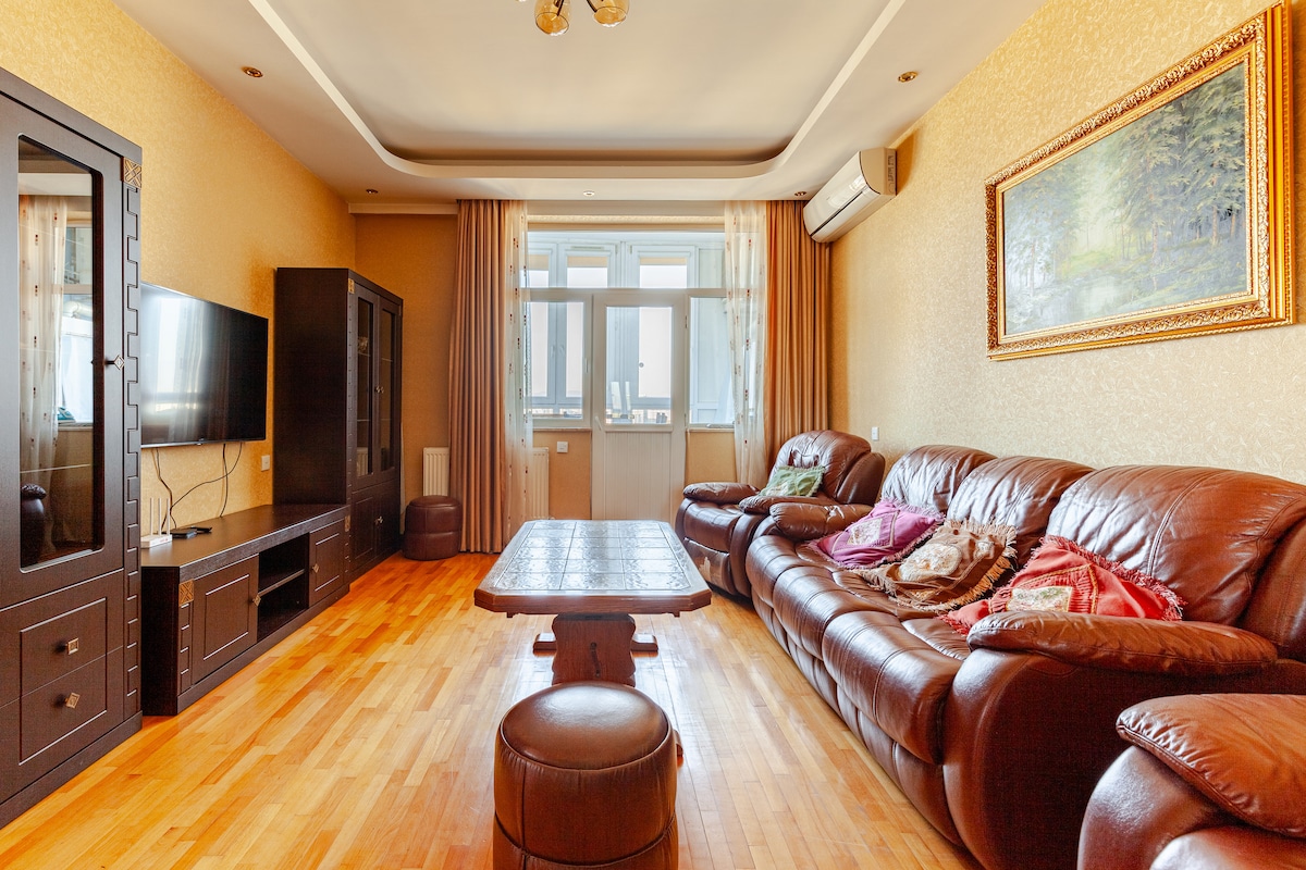 Relax with the whole family at this peaceful place to stay.🏦 Keep it simple at this peaceful and centrally-located place.🏦 ⭐⭐⭐⭐⭐ ***in 5 stars best residential tower in Tbilisi*** this complex has a perfect gym, spa with 2 type sauna, massage salon 3 solarium , 2 types of pool indoor and outdoor, conference room dedicated daily office and shared workplace, restaurant, coffee shop -> all extra services in king David have separated charge and price <-